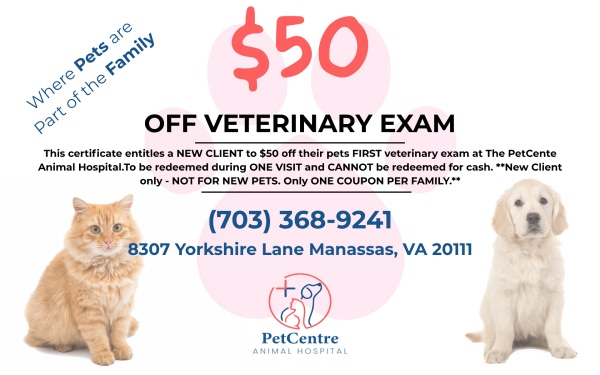 We would love to meet you and your dear pet! Give us a call at (703) 368-9241 or contact us today to schedule your pets first exam at the Petcentre Animal Hospital.